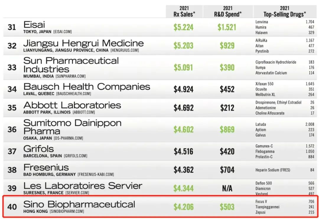 再次入選!中國(guó)生物制藥位列全球制藥企業(yè)50強(qiáng)第40名