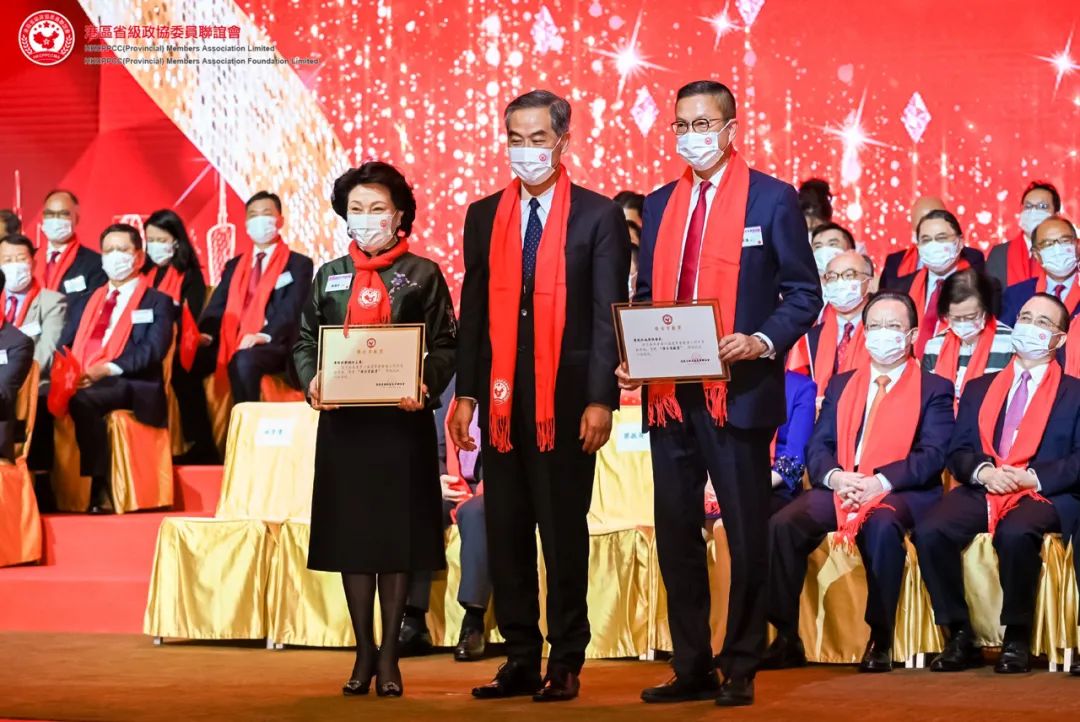 在活動頒獎環節,全國政協副主席梁振英為聯誼會主席鄭翔玲、會長施榮懷頒發杰出貢獻獎,行政長官林鄭月娥、候任行政長官李家超、中聯辦副主任譚鐵牛、中國外交部駐香港特派員公署特派員劉光源為獲獎委員頒發優秀會務獎,中央政府駐香港維護國家安全公署副署長孫青野、香港財政司司長陳茂波、律政司司長鄭若驊、中聯辦協調部部長朱文為獲獎人員頒發優秀委員獎,聯誼會主席鄭翔玲、會長施榮懷分別為李然女士、蔡加贊先生頒發基金副主席委任狀和感謝狀。