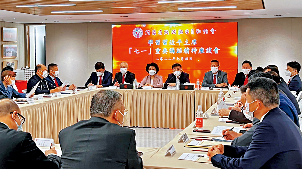 7月4日,為深入學(xué)習(xí)、貫徹、落實(shí)習(xí)近平主席“七一”重要講話精神,港區(qū)省級(jí)政協(xié)委員聯(lián)誼會(huì)舉行座談會(huì)。聯(lián)誼會(huì)主席鄭翔玲、會(huì)長(zhǎng)施榮懷等一眾成員在分享學(xué)習(xí)體會(huì)時(shí)表示,習(xí)近平主席的講話是香港未來(lái)發(fā)展的指南和準(zhǔn)則,港區(qū)省級(jí)政協(xié)委員作為愛(ài)國(guó)愛(ài)港的重要力量,應(yīng)該積極主動(dòng)履職擔(dān)當(dāng),堅(jiān)持走基層,訪民、助民、幫民,針對(duì)民生痛點(diǎn)、難點(diǎn),為特區(qū)政府出謀劃策,協(xié)助解決長(zhǎng)期困擾香港的各類深層次矛盾和問(wèn)題。