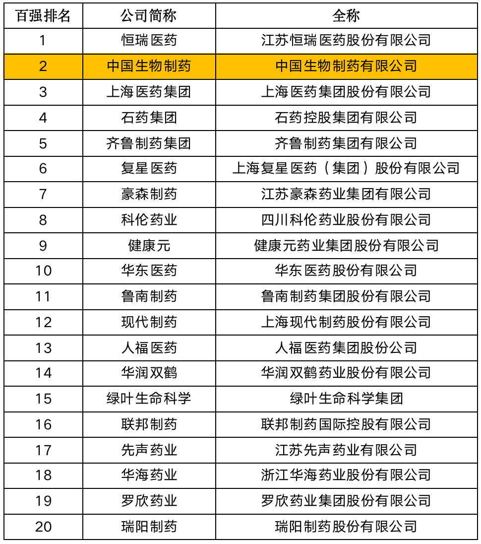 中國生物制藥榮獲“2021年度中國化藥企業(yè)TOP100排行榜”第二名