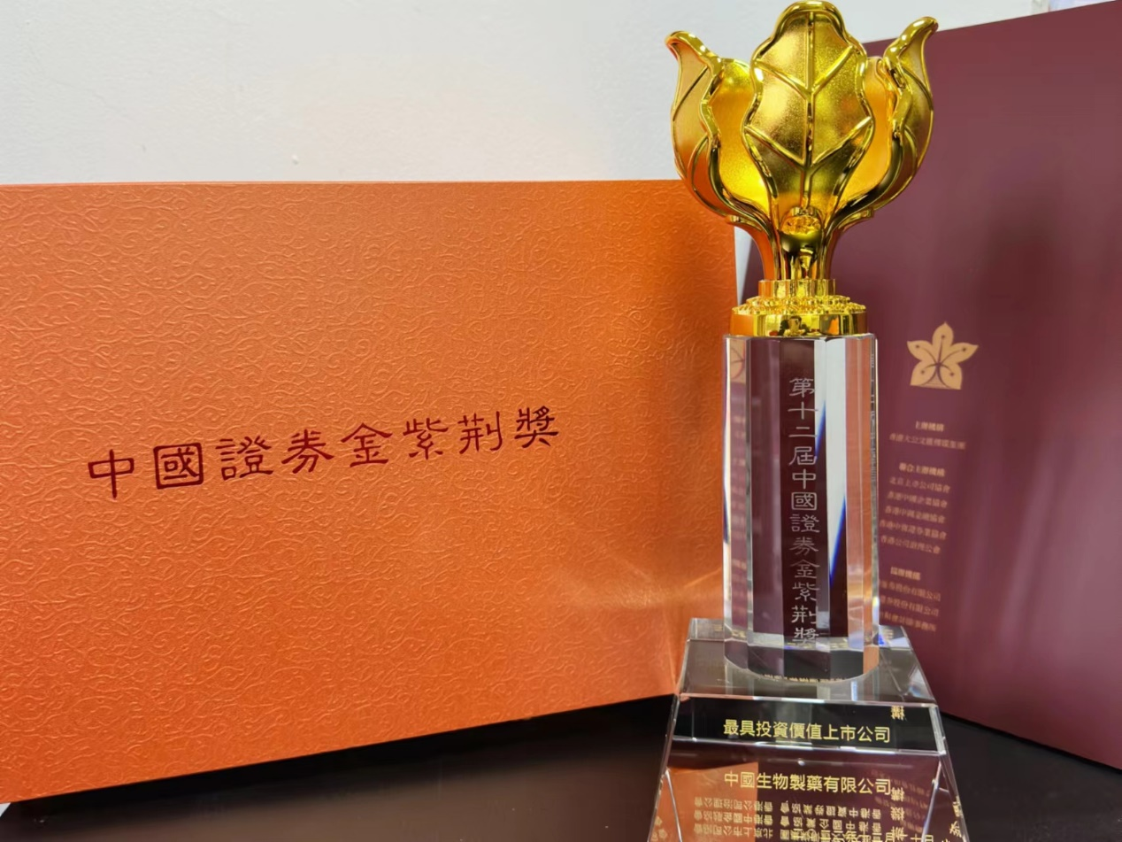 中國生物制藥榮獲第十二屆中國證券金紫荊獎“最具投資價值上市公司”