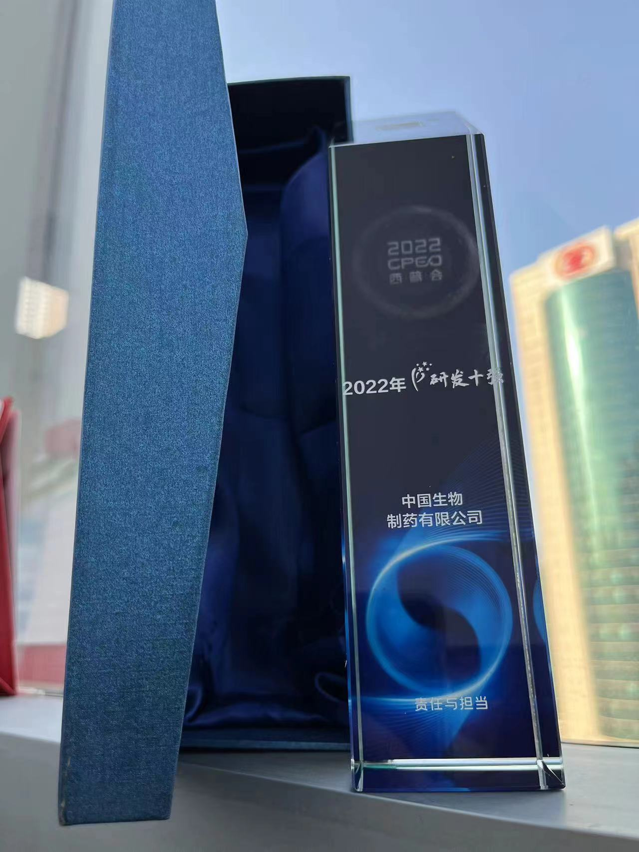 中國生物制藥榮獲西普會 “2022年研發十強” 獎項