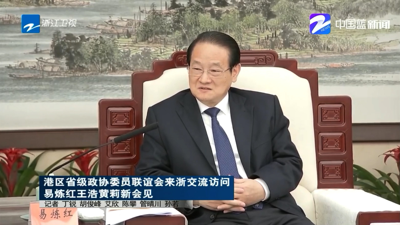 4月18日,香港港區省級政協委員聯誼會一行40人組成的經貿文化考察團,抵達浙江考察交流。考察團由聯誼會主席、正大制藥集團總裁鄭翔玲,會長、全國政協常委施榮懷任團長,香港中聯辦協調部部長朱文任顧問。19日下午,浙江省委書記、省人大常委會主任易煉紅,與省委副書記、省長王浩,省政協主席黃莉新一起,在杭州會見了聯誼會參訪團一行。浙江省領導陳奕君、邱啟文參加會見。