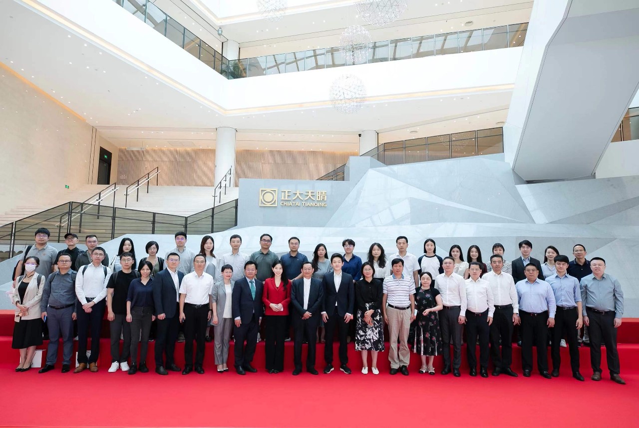 中國生物制藥董事會主席謝其潤,資深副主席謝炳,首席執行長謝承潤,資深副總裁謝炘,首席策略官陳鵬亙,首席財務官李春玲出席了在南京正大天晴舉辦的發布會,并在會后陪同與會的投資人和媒體記者參觀了正大天晴。