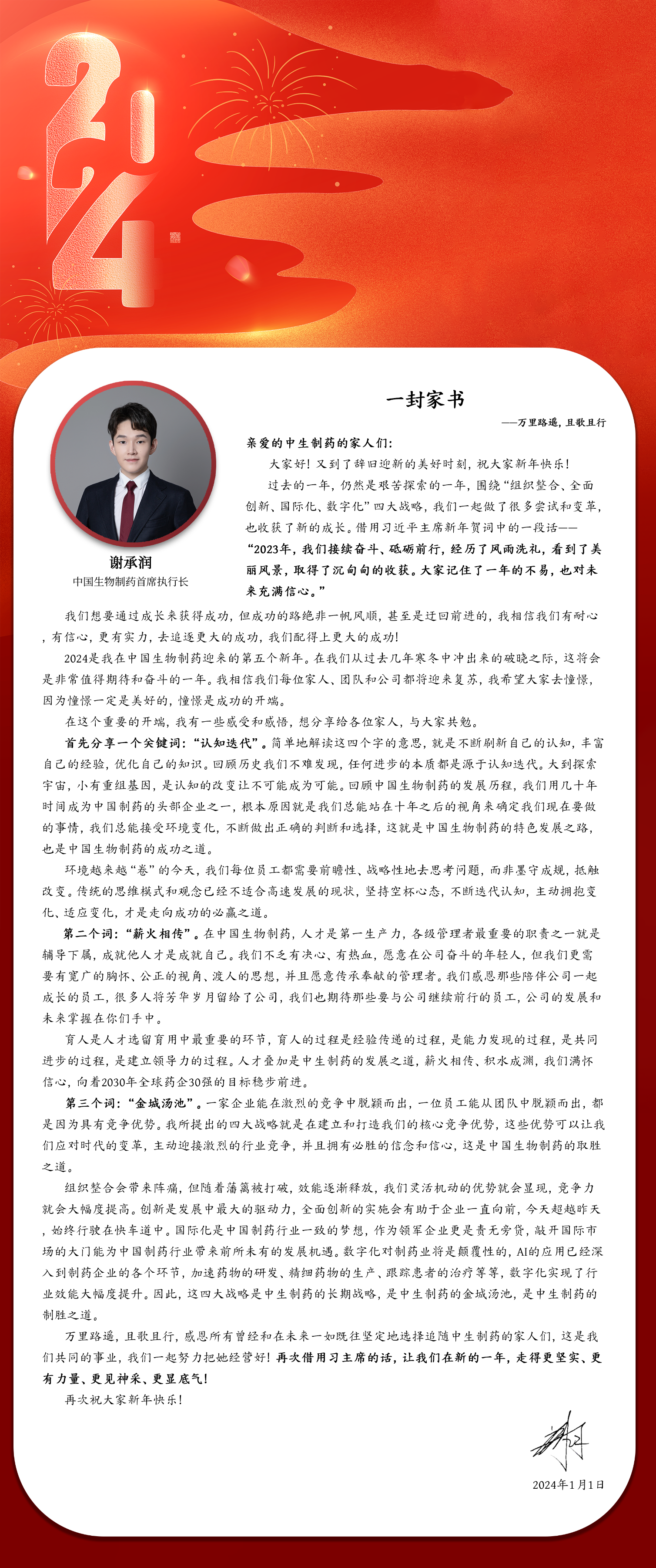 謝承潤:寫給中國生物制藥家人們的一封家書
