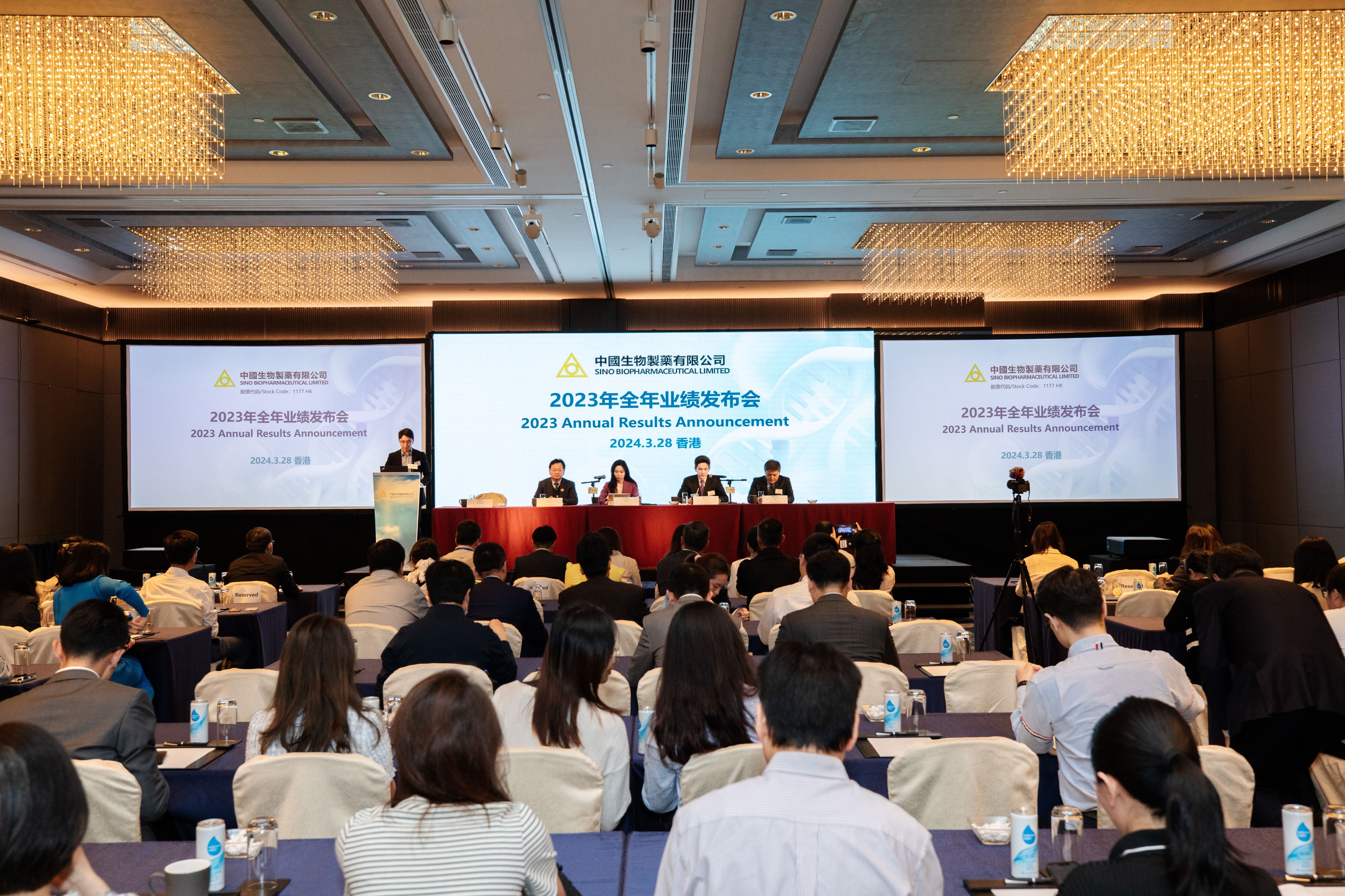 中國生物制藥董事會主席謝其潤,首席執(zhí)行長謝承潤,資深副總裁謝炘,首席戰(zhàn)略官陳鵬亙出席在香港舉行的業(yè)績發(fā)布會,來自投資機構和媒體的400多位投資人和記者現(xiàn)場或者線上參會。