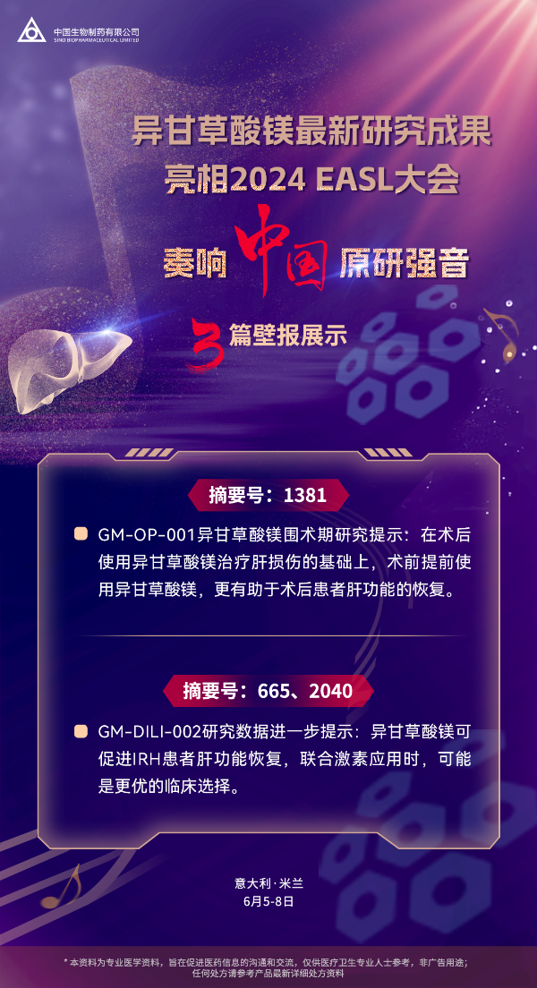 2024歐洲肝病學會年會 | 中國生物制藥異甘草酸鎂最新研究成果將奏響原研強音