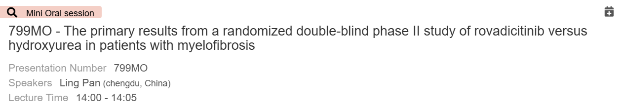 799MO-羅伐昔替尼對比羥基脲治療中高危骨髓纖維化的隨機(jī)、雙盲、陽性對照II期關(guān)鍵臨床研究