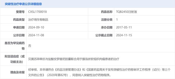 貝莫蘇拜單抗第5適應癥將申報上市,此前被納入突破性治療品種