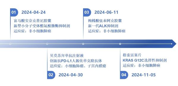 格索雷塞片(商品名:安方寧)的首個適應癥是用于治療至少接受過一種系統性治療的KRAS G12C突變型的晚期非小細胞肺癌(NSCLC)成人患者。格索雷塞是正大天晴與益方生物合作開發的一款KRAS G12C選擇性抑制劑。2024年世界肺癌大會(WCLC)上公布的一項Ⅱ期臨床結果顯示,受試者ORR達52.0%,DCR達88.6%,中位PFS為9.1個月,中位OS為14.1個月[4]。