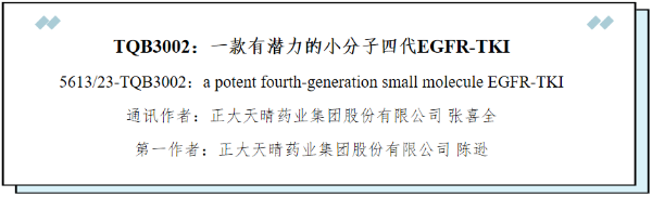 [1] Xun Chen, Lihua He, Xin Tian, Fei Liu, Hongjiang Xu, Ling Yang, Wei Zhao, Xiquan Zhanget al. TQB3002:a potent fourth-generation small molecule EGFR-TKI.2025 AACR.