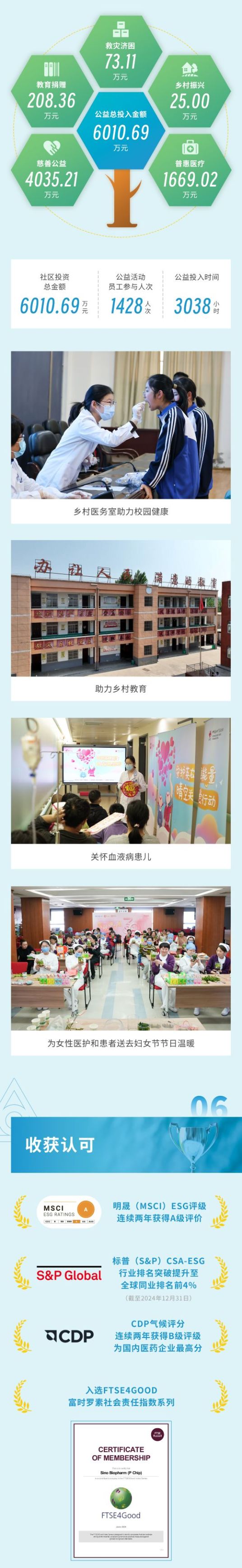 4月29日,中國生物制藥(HK.1177)發布2024年度環境、社會與管治(ESG)報告。2024年度,集團ESG管治體系保持有效運行,CARE ESG策略系統實施,ESG重大風險得以有效管控。集團首個“ESG三年規劃(2022-2024)”全面落地,在“疾病治療”“醫藥可及”“共贏關系”“環境友好”四大重點領域持續深耕,并取得顯著進展。