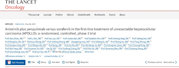 [1]Jian Zhou, Li Bai, Jia Luo, et al. Anlotinib plus penpulimab versus sorafenib in the first-line treatment of unresectable hepatocellular carcinoma (APOLLO): a randomised, controlled, phase 3 trial. Lancet Oncol 2025; Online First.