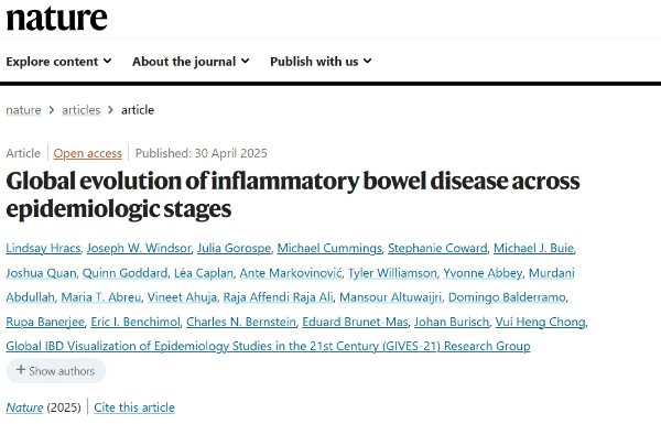 [1] Hracs, L., Windsor, J.W., Gorospe, J. et al. Global evolution of inflammatory bowel disease across epidemiologic stages. Nature (2025).