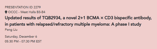 2025 ASH | TQB2934(BCMA×CD3雙抗)公布最新研究數據,多適應癥同步推進臨床