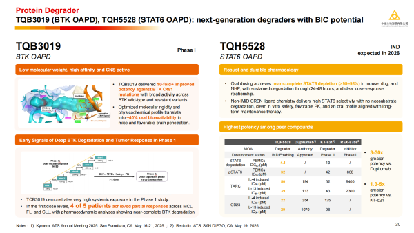 ·TQH5528 :臨床前研究顯示,即使在極低口服劑量下,關鍵組織中的STAT6近乎完全降解,有望成為下一代口服免疫療法。