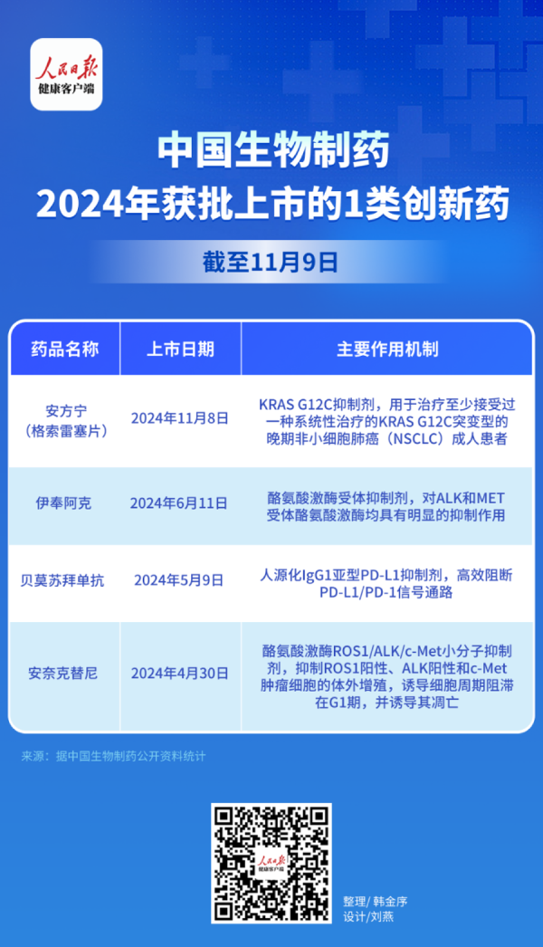 據人民日報健康客戶端記者不完全統計,截至11月9日,包括“安方寧”在內,中國生物制藥今年已獲批四款1類創新藥。