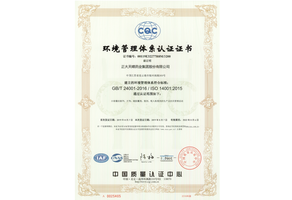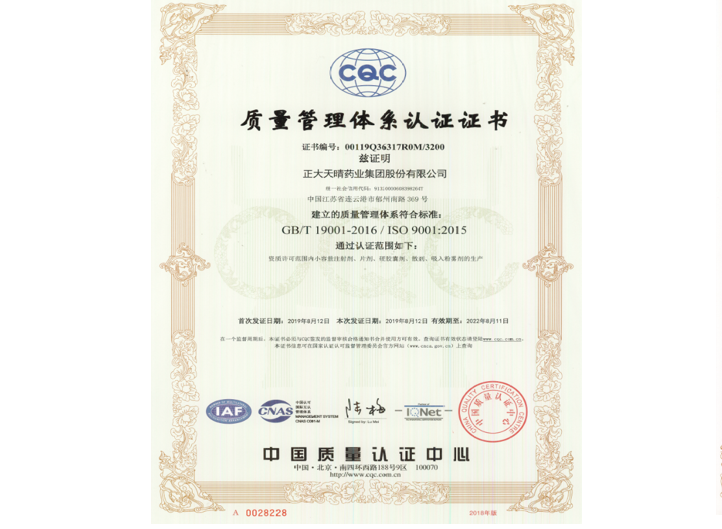 中國生物制藥要求成員企業積極開展產品質量認證,重點成員企業正大天晴獲得了ISO9001質量管理體系認證,每3年接受中國質量認證中心(CQC)再認證審核,有效期內每年接受中國質量認證中心(CQC)監督審核,確保質量管理體系的持續符合性和有效性。2022-06-30 -